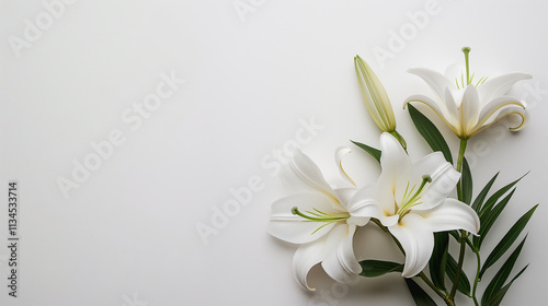 Elegant white lily flower with green stem blooming in nature with beautiful petals on display