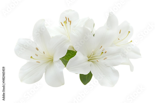 Elegant white lily flowers with green leaves isolated on transparent background for design use