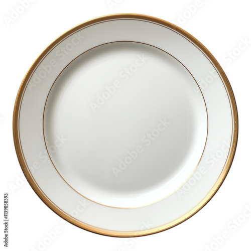 Elegant white plate with gold trim studio setting food presentation minimalist design top down view luxury dining concept