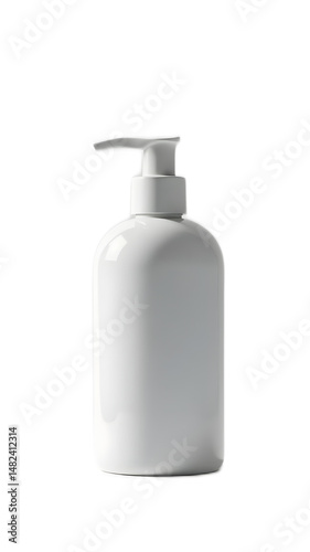 Elegant white pump bottle standing on a clean surface, ideal for showcasing various liquids in minimalistic design