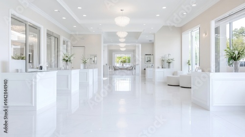 reception, hall, white, modern, elegant, bright, roomy, interior, design, luxury, architecture, decor, contemporary, clean, minimalist, sophisticated, lobby, entrance, receptionist, counter, furniture, lighting, window, plant, calm, peaceful, fresh, neutral, home, office, event, space, commercial, building, style, decorating, hospitality, hotel, showroom, boutique, refined, cleanliness, high-end, ambience, polished, marble, light