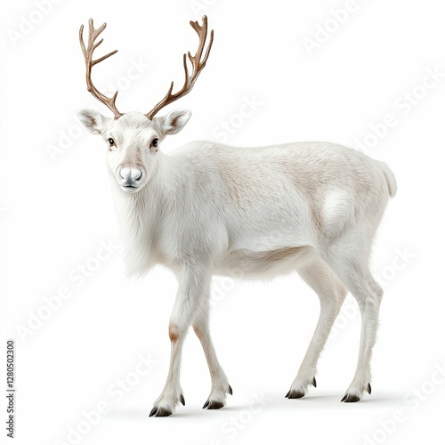 reindeer, ungulate, antler, cervid, wildlife, albino, fauna, cervidae, mammal, hoofed, animal, majestic, christmas, arctic, illustration, white, purity, graceful, portrait, creature, serene, digital, snow, artful, innocence, background, beauty, nature, rendering, winter, magical, standing, cold, art, aethereal, looking, fantasy, posing, peaceful, elegant, stillness, brown, isolated, studio, outdoors