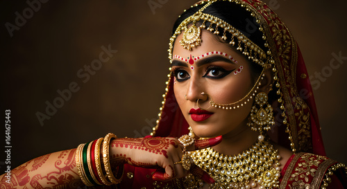 woman, traditional, jewellery, make-up, red, bridal, henna, portrait, cultural, beauty, fashion, ethnic, ornate, accessory, elegance, rich, gold, dress, celebration, festival, indian, heritage, stunning, expression, glamour, detailed, vibrant, adornment, style, photo, closeup, artistic, background, intricate, festive, portraiture, ceremonial, striking