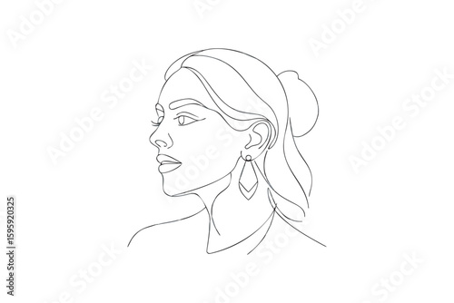 Elegant Woman Portrait in Continuous Line Art Style with Geometric Earring