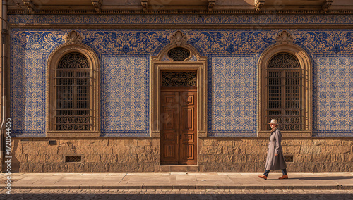 woman, architecture, blue, facades, walking, tile, street, elegance, style, fashion, beauty, serenity, grace, calmness, human, emotion, culture, artistic, modern, historic, decorative, urban, city, detail, design, heritage, tour tourism, detail, landmark, travel, photo, lisboa, wall, sunlight, shadow, cobbled, relaxed, vibrant, traditional, cosy, charme, landscape, picturesque, visual