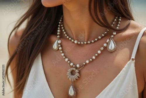 necklace, woman, pearl, jewellery, fashion, elegant, layered, accessory, beach, summer, natural, beauty, chic, closeup, ocean, stylish, marin, lightweight, handcraft, shimmering, decorative, unique, trendy, coastal, feminine, sunlight, glamour, sophisticated, radiant, fresh water, design, intricate, bohemian, charme, vibrant, distinctive, aesthetic, relaxed, model, sensuality, elegance