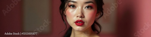 Elegant woman with Asian features wears luxurious makeup, beauty, elegance