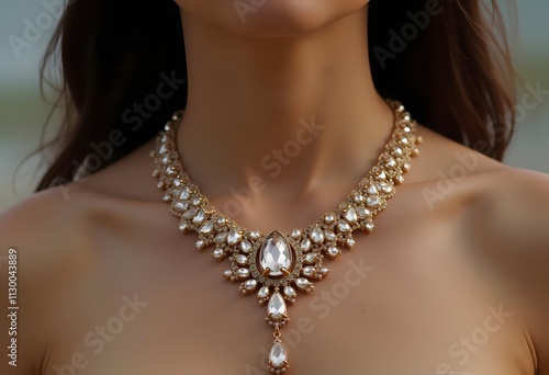Elegant woman with jewelry. Beautiful woman with diamond necklace. Young beauty model with diamond pendant and earrings. Jewellery and accessories. Fashion and beauty salon. Perfect lip makeup