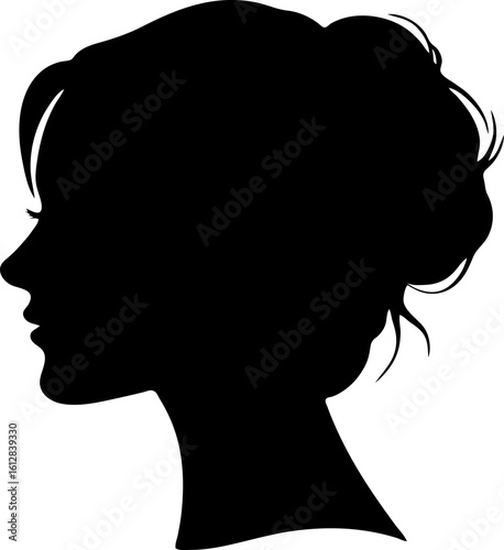 Elegant Woman�s Profile with Bun and Escaping Strands in Minimalist Silhouette