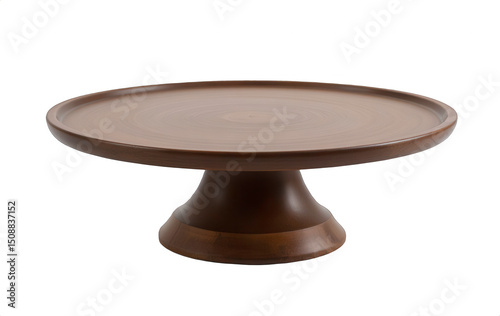 Elegant wooden cake stand featuring a smooth circular top and a stylish pedestal base, perfect for displaying desserts and decorative items in kitchens