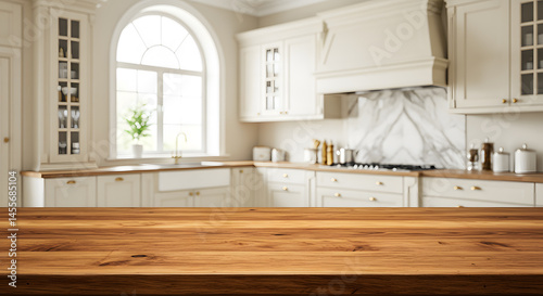 Elegant Wooden Table in Classic Kitchen, Ideal for Traditional Food Presentation