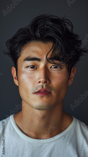 Elegant Young Korean Man Wearing a T-Shirt and Jewelry