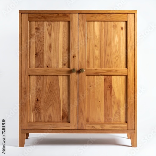 Elegantly crafted wooden cabinet, a storage solution with subtle beauty and refined lines against a clean white background