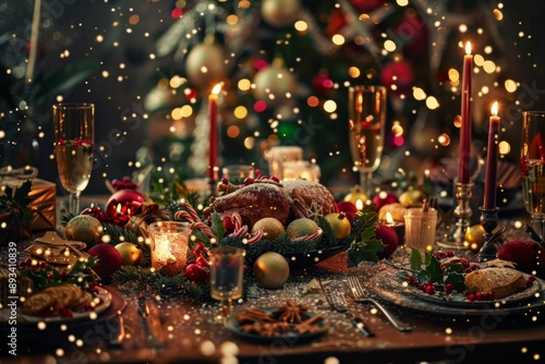christmas, festive, holiday, decoration, winter, cosy, warm, glowing, celebration, merry, elegant, tradition, seasonal, night, magical, joyful, family, atmosphere, ornament, candle, inviting, cheerful, present, home, decor, background, celebrate, concept, greeting, banner, design, ornament, light, december, year, new, season, decoration, new year, happy, gift, christmas, 2025, wine, dinner, evening