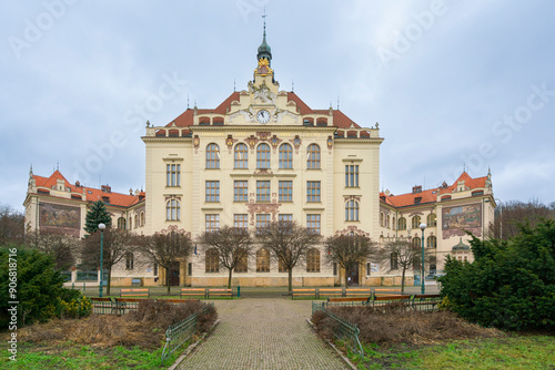 elementary school, day care, prague, czech republic, historic building, courtyard, tree, bench, fence, clock-tower, winter, city landscape, architecture, europa, public school, education, building exterior, brick building, stone building, landmark, city centre, city landscape, front yard, schoolyard, street scene, classroom, school supplies