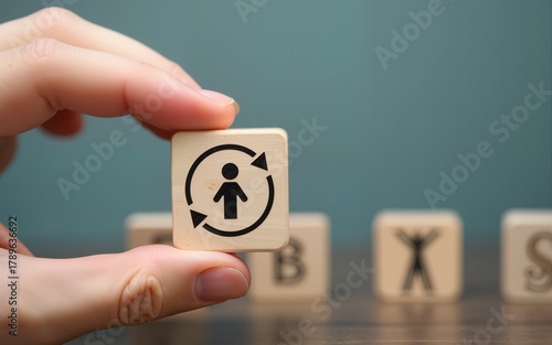 Elements of leadership to success concept, Hand holding wood block with icon leader business, copy space. High quality