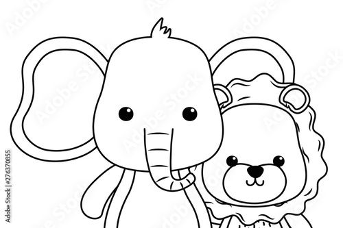 elephant, lion, cartoon, animal, cute, vector, illustration, zoo, life, nature, icon, fauna, character, environment, graphic, adorable, creature, happy, element, friendly, diverse, icon, nobody, lovely, conservation, attraction, reserve, simple, illustration