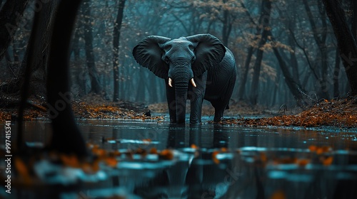 elephant, forest, water, nature, wildlife, tranquil, mist, tree, landscape, wilderness, habitat, animal, serene, environment, beauty, peaceful, tusk, foliage, autumn, river, ecosystem, fauna, scenery, adventure, exploration, depth, calm, shadow, colours, natural, majestic, large, flora, scenic, river bank, misty, solitude, biodiversity, lush
