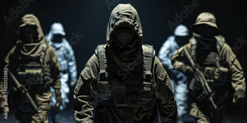 Elite Tactical Squad in Gear Poised for Stealth Operation