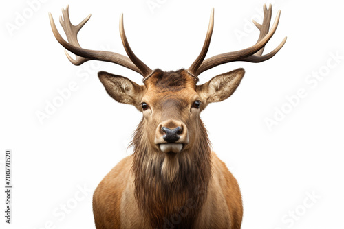 Elk close-up portrait on a white background.