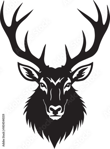 cervid, animal, vector, reindeer, illustration, silhouette, wildlife, elk, head, horn, horn, hunting, horned, christmas