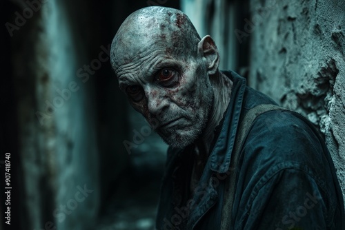 emaciated, ghoul, creature, horror, skittish, character, undead, eerie, grisly, decayed, creepy, monster, halloween, sunken, eye, scrawny, haunting, sinister, lighting, shadow, abandoned, alley, desolate, haunted, frightening, realistic, photo