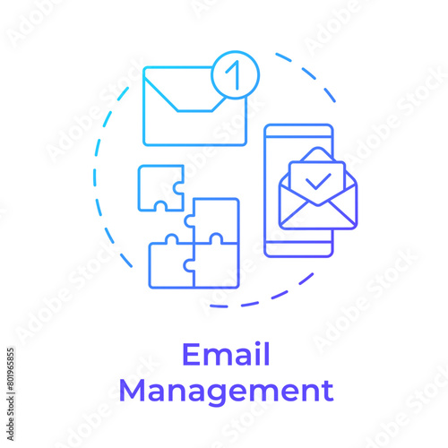 Email management blue gradient concept icon. CRM mobile app, software tool. Virtual assistant. Round shape line illustration. Abstract idea. Graphic design. Easy to use in infographic, presentation