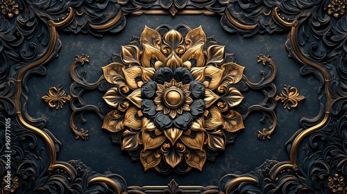 mandala, embossed, ornament, background, pattern, texture, intricate, design, floral, wall, decoration, luxury, gold, black, elegance, art, ornamental, classic, detailed, craft, artistic, carved, sculpture, relief, symmetry, symmetric, decorative, culture, tradition, ethnic, antique, regal, religion, copy space, top, copy, space