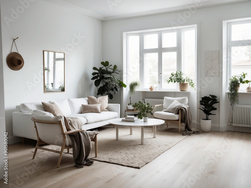 living room, wooden floor, potted plants, harmony, serene, minimalistic, fusion, tranquil, cosy, earthy, calming, organic, refined, balanced, stylish, sophisticated