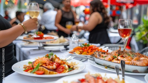 Embracing Global Flavors: Joyful Black Travelers Exploring Culinary Traditions at Vibrant Restaurant