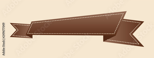 Embroidered flat style brown ribbon isolated on ivory background. Brown fabric vintage tape. Template for banner, award, sale, icon, logo, label, poster etc. Vector illustration