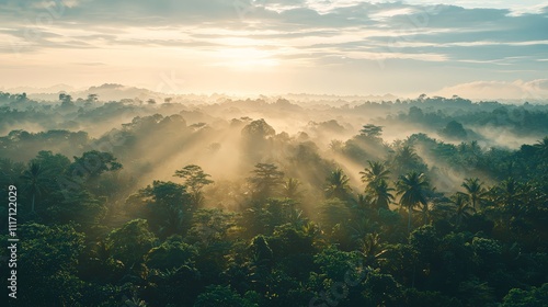 rainforest, emerald, waterfall, distant, overcast, sky, dense, grey, cloud, afternoon, sunlight, muted, soft, brightness, lush, texture, sheen, mysterious, enchanting, atmosphere, curiosity, peace, untouched, nature, landscape, vibrant, huge, foliage, tropical, jungle, serene, beauty, wilderness, biodiversity, canopy, exploration, greenery, moist, ecosystem, exotic, wildlife, adventure, calm, humid