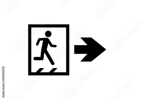 emergency exit, exit sign, emergency, exit, safety, direction, arrow, public safety, signs, graphic, symbol, black-and-white, monochrome, illustration, evacuation, signage, security