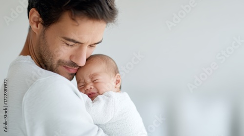 emotional, sharpened, action, father, baby, newborn, parenthood, tear, joy, love, family, bonding, connection, raw, emotion, fatherhood, first, time, care, tender, moment, happiness, bond, copy, space, text, parenting, new, father, son