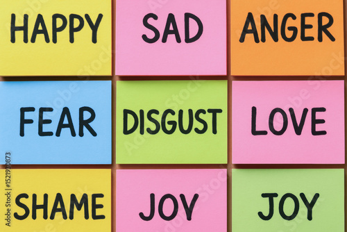emotion, feeling, intelligence, support, happy, sad, anger, fear, disgust, love, shame, joy, sticky, note, paper, handwriting, mood, psychology, mental, health, expression, communication, background, message, text, positive, negative, human, word, emotional, awareness, learning, development, well-being, growth