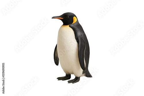emperor penguin standing on white background, isolated wildlife animal illustration with bright yellow neck and smooth feathers