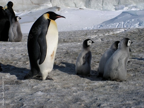 many, nature, outdoors, eltern, penguin, place, polar, pole, protection, scenic, seabird, several, sky, snow, south, stand, travel, water, white, wild, wildlife, little, landscape, ice, animal, antarctic, antarctica, baby, bird, blue, care, chick, crust, winter, day, egg, emperor, evening, family, freeze, group, habitat, dusk, young