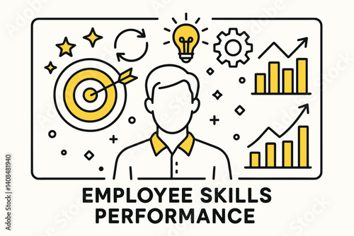 Employee skills performance. Modern flat line art illustration. Trendy outline vector graphic elements. Creative concept. Black and yellow colors isolated on white background