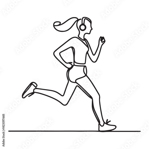 running, woman, fitness, health, exercise, earphones, music, sport, jogging, active, lifestyle, motivation, training, physical exercise, run, silhouette, illustration, vector, wellness, cardio, healthy, movement, energy, strength, endurance, rythm, power, determination, goal, speed, motion, progress, sharpened, discipline, effort, challenge, dedication, sprint, marathon, race