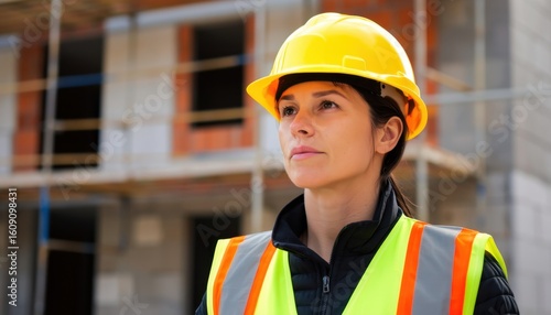 Empowered construction worker overseeing project urban site portrait daytime professionalism and dedication