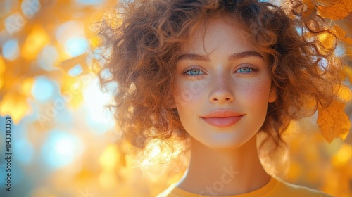 Empowering Community with Smiling Female Student in Vibrant Outdoor Scene Sunlight Through Autumn Leaves