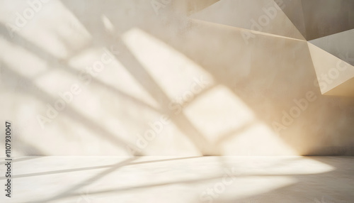Empty abstract background in neutral beige colors for business product presentation. Geometrical shadows on wall for modern minimalist mockup backdrop.