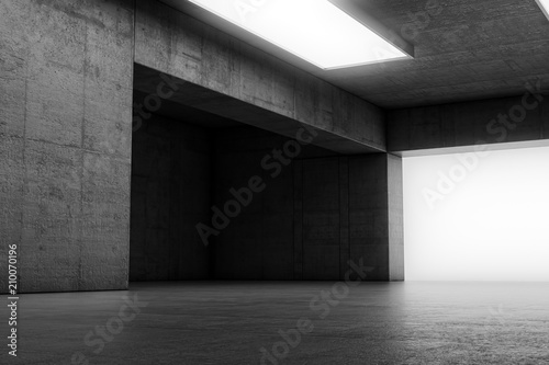 three-dimensional, abstract, architecture, background, blank, concrete, construction, dark, design, empty, floor, grey, grunge, grimy, hall, indoor, industrial, interior, light, modern, nobody, perspective, render, room, shadow, space, studio, wall, white