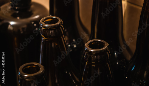 Empty beer bottles. Brown glass bottles. bottling of homemade beer.