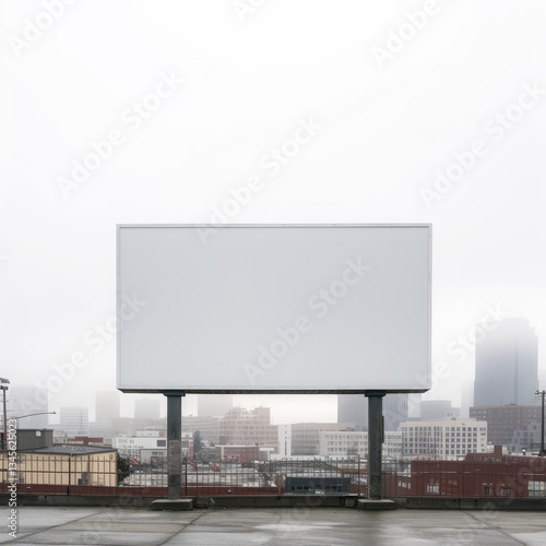 billboard, empty, blank, city, urban, foggy, day, advertising, signs, poster, city landscape, view, rooftop, car park, architecture, commercial, marketing, display, modern, blank space, promotional, advertisement, design, background, light, grey, white, fog, hazy, empty space, photo, photo, image, visual, digital