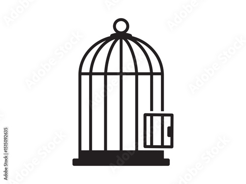 cage, empty, silhouette, black-and-white, clip art, pet, animal, confinement, freedom, open door, wire, bar, metal, vintage, antique, decorative, home decor, aviary, captivity, isolated, outline, drawing, simple, minimalist, design, icon, symbol, metaphor, concept, release, escape, vacant, framework, structure, latch, door, old-fashioned, traditional, rustic, ornate