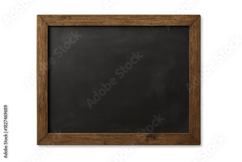 Empty chalkboard with rustic wooden frame, clean surface for text or drawings, isolated on a transparent background