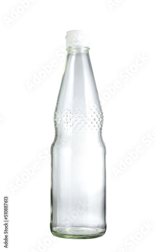 Empty Clear Glass Bottle isolated on white background Suitable for Mock up creative graphic design, clipping path.