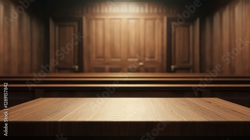 Empty Courtroom with Judges Bench and Atmosphere of Anticipation