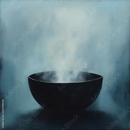 bowl, steam, empty, dark, cooking, hot, food, kitchen, still life, studio, art, abstract, background, light, vapour, interior, design, object, surface, minimalist, modern, smooth, grey, blue, dish, image, still, scene, texture, creative, contemporary, style